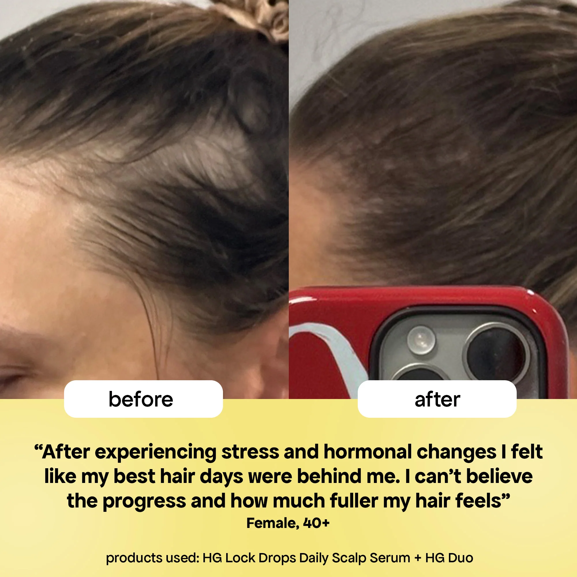 The HG Shampoo and Conditioner gently cleanse, hydrate, and fortify, while Lock Drops—our most powerful anti-shedding serum—deliver targeted scalp care to help anchor hair at the root and combat thinning. Now in perfectly portable minis, this trio is the perfect starter kit or travel-friendly version of your HG essentials.